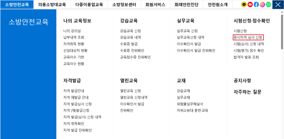 응사 자격 심사를 신청하려면 한국소방안전원 사이트에 가입을 해야합니다.