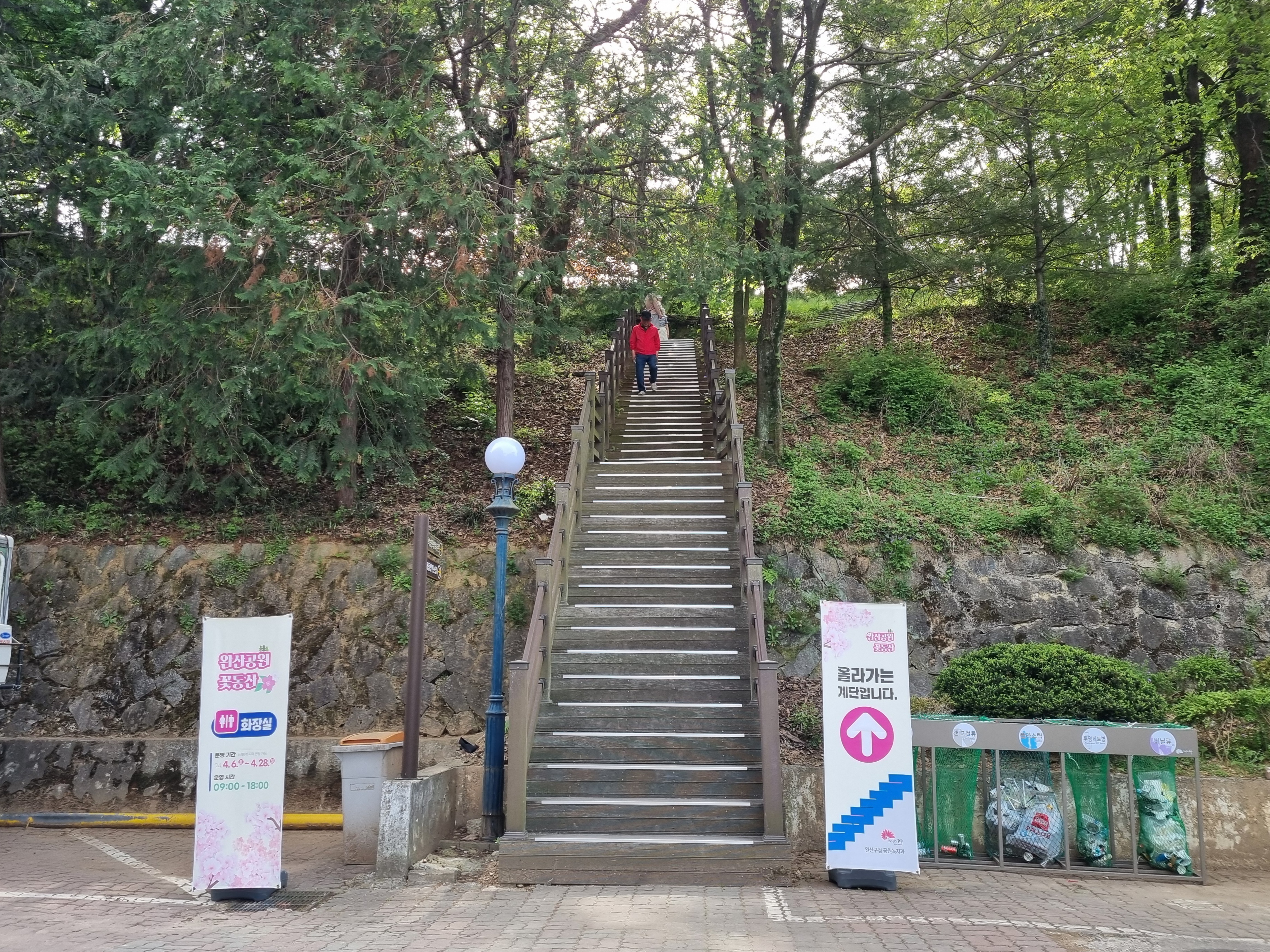 도서관은 현재 공사로 인해 휴관 중이고, 도서관 오른쪽 계단으로 올라가면 꽃동산이 펼쳐집니다.