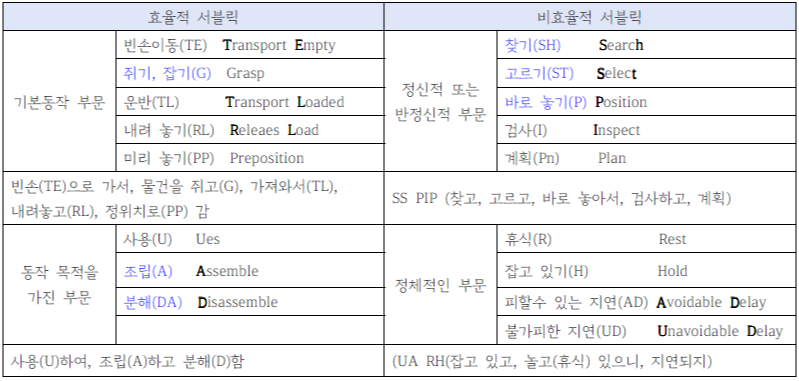 동작연구를 통하여 인간이 행하는 모든 (수작업)은 (18)가지의 기본동작으로 구성될 수 있다.