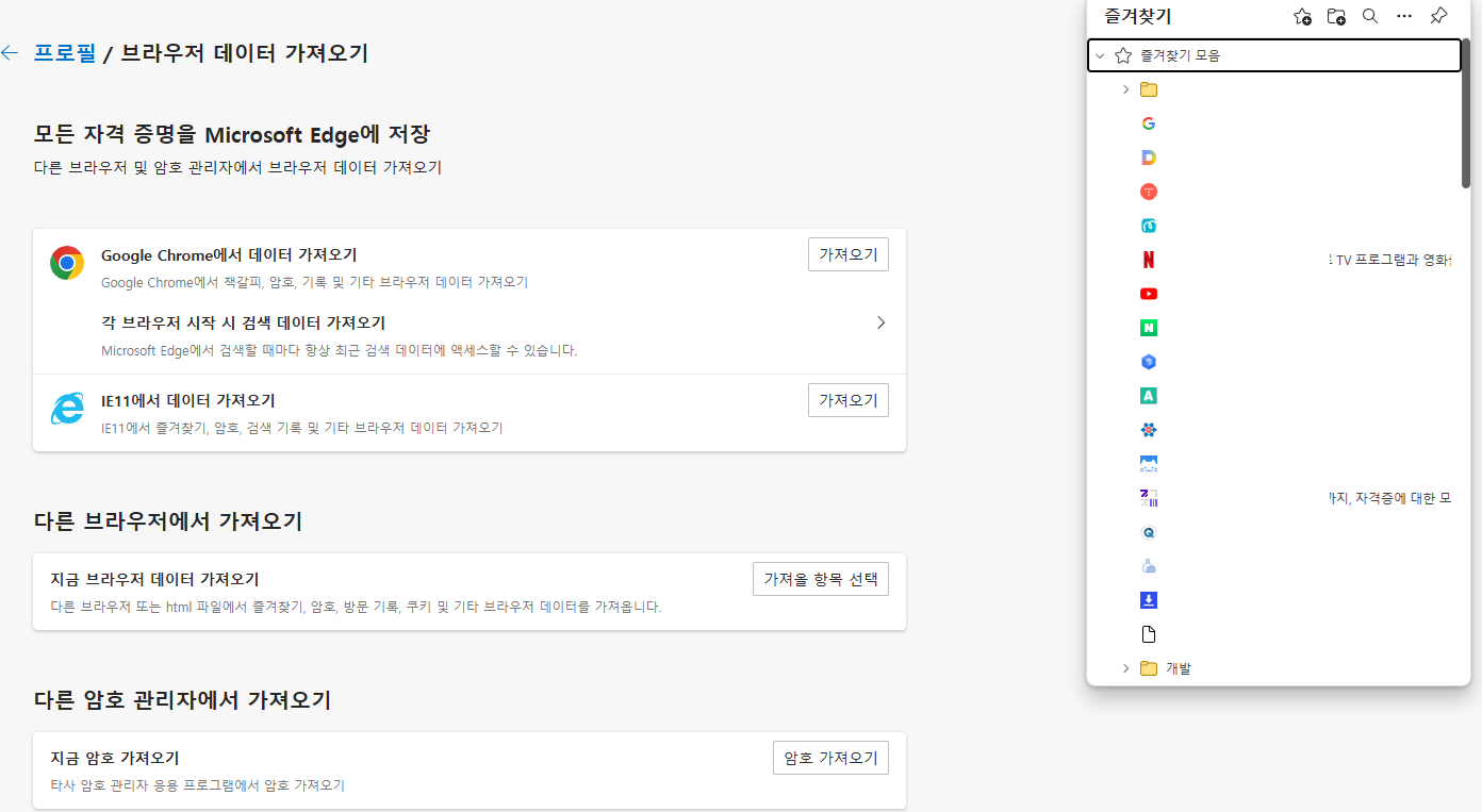 이렇게 저장이 완료된 후 즐겨찾기 가져오기를 실행하면 됩니다.